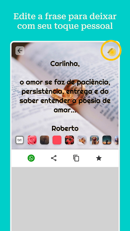 • 📝 Düzenleme: Mesajınızı paylaşmadan önce herhangi bir cümleyi düzenleyerek özelleştirin, böylece mesajı yüzünüzle bırakın ve alıcı kendini daha özel hissedsin.