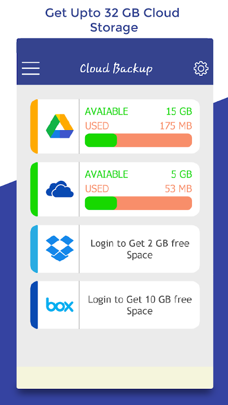 Cloud storage drive is basically all in one solution for free online storage. We have combined top 4 free cloud storage services together like Google Drive, OneDrive, Dropbox and Box. You can get free cloud storage of all these cloud storage drives at one place free of cost.