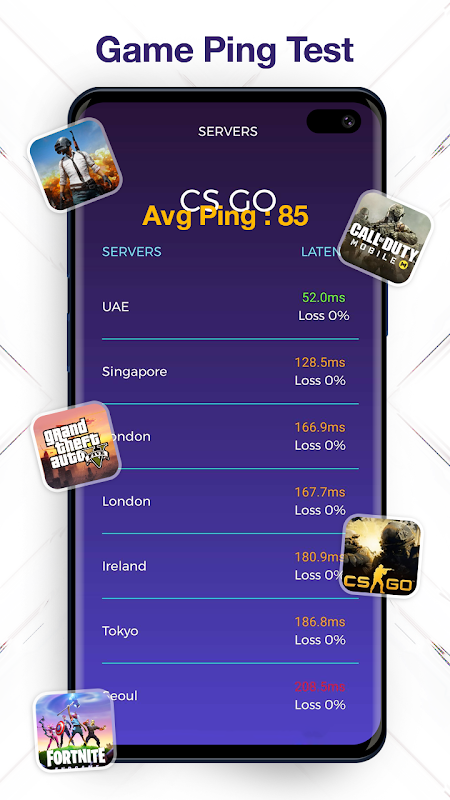 Internet Speed Test 2020'yi kullanın - Tüm Oyunlar Ping denetleyicisi, oyun oynamak için neredeyse tüm olası sunucuların gecikmesini kontrol etme potansiyeline sahiptir, desteklenen sunucular aşağıda yazılmıştır: Dubai, Avrupa, Asya, Güney Doğu Asya, Oceana, Avustralya, Korece / Japonya, Çince, Hint, Kuzey Amerika, Güney Amerika, Doğu ve Batı Avrupa Sunucuları istek üzerine daha fazla sunucu ekleyeceğiz, bu nedenle lütfen sunucu gecikmesi ve ping ile birlikte uygulamamıza hangi oyunları eklememizi istediğinizi bize bildirin.