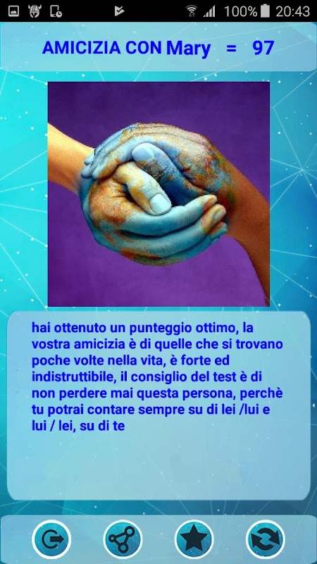 Bu test iki değişkene dayalı başka bir kişi ile dostluk dostluk derecesini hesaplar: