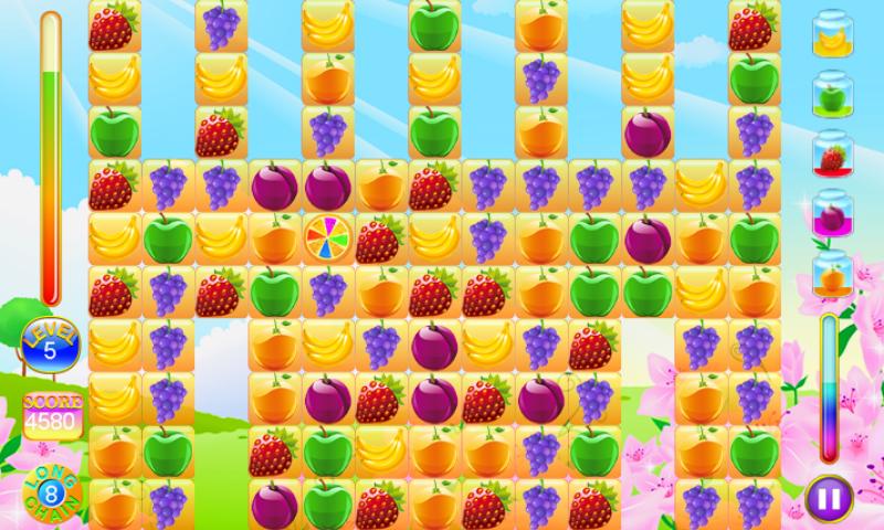 Want a relaxing game for a while? Fruit Link is your choice, it is a simple and addicting game for relaxing. You swipe and make longest chain of same fruits in this game with exciting special powers. There are different targets in each level, you collect fruit chains to fill these targets, when all of the targets for a level are removed, you pass this level. This game will give you a feeling of relaxing while playing, so have a try, don't miss the fun that it can bring to you.