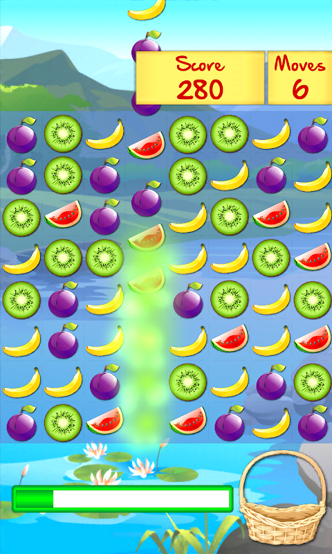 - match 3 or more fruits of the same kind by swiping them horizontally or vertically;