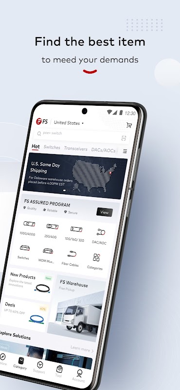 FS uygulaması veri merkezi, kurumsal, telekom için ağ ürünleri / çözümleri alışveriş ve her yerde / her zaman siparişlerinizi yönetmek için basit, hızlı ve güvenli bir yoldur. Kategorilere göre ürünlere göz atın, ağ bağlantı çözümlerini keşfedin, teknik destek isteyin, ürün incelemelerini okuyun ve siparişlerinizin durumunu kontrol edin.
