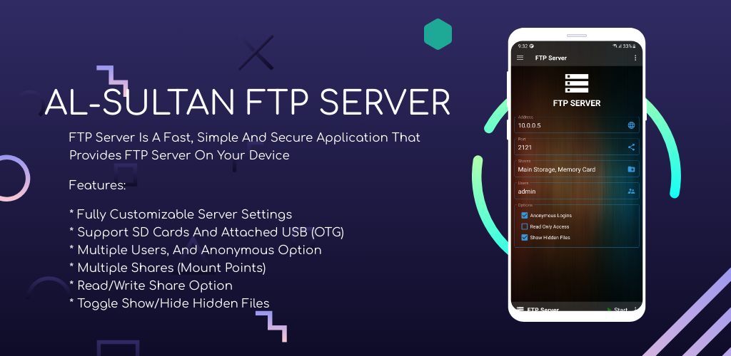 FTP Sunucusu, Cihazınızda FTP Sunucusu Sağlayan Hızlı, Basit ve Güvenli Bir Uygulamadır