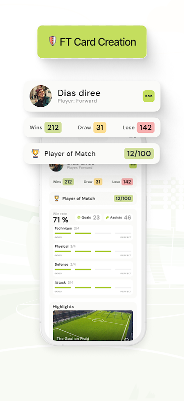 FT Play'i farklı kılan şey, performans takibi ve oyuncu tanıma konusundaki odaklanmamızdır. Her oyun sunucu tarafından doğrulanır ve hedefleriniz, asistleriniz, galibiyetleriniz ve daha fazlası istatistik profilinizi oluşturmak için otomatik olarak kaydedilir. Verileriniz FT Kartınızı güçlendirir — Teknik, Fiziksel, Savunma ve Saldırı genelinde derecelendirilen becerilerinizin görsel bir vitrini. Her zaman güncel olan kişisel futbol kimliğinizdir.