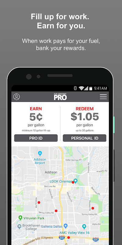 Fuel Rewards® Pro, depoyu iş için doldurmak zorunda olanlar için özel bir programdır. Artık kendi kazancınızı doldururken kullanmak için kişisel Fuel Rewards hesabınıza ödüller ekleyebilirsiniz.