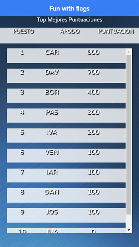 ¡Fun With Flags es el juego con el que podrás poner a prueba tus conocimientos sobre los continentes, países y provincias! ¡Selecciona uno de sus modos y disfruta! Además, ¡es GRATIS y SIN ANUNCIOS!