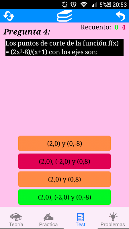 - Test: permite realizar una autoevaluación con 10 ejercicios tipo test recogidos de forma aleatoria.