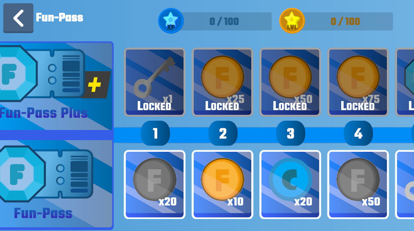FunPass adı verilen oyunda bir de battlepass sistemi mevcut. Oyunu oynadıkça XP kazanırsınız ve FunPass'te ilerleme kaydedersiniz. İlerledikçe size bazı ödüller verir.