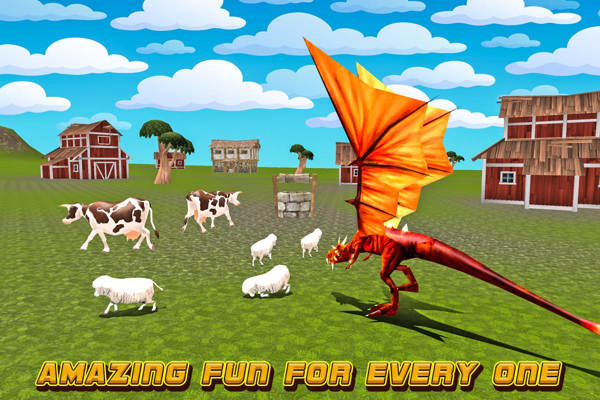 you must download this dragon simulator 3d game in dragon games for your kids, certainly they will enjoy flying their little monster over the city zoo, village farm and desert to prey other cartoon animals. Chase and attack ferociously on the animals with great wilderness in this dragon simulator. n. This animal fighting games will grant you experience to level-up your ultimate dragon. This dragon simulator game is restricted for 13+ ads.