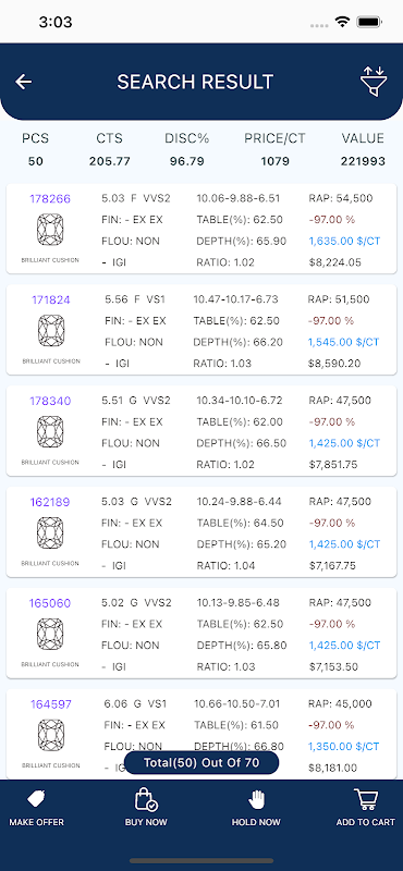 Elmas satın almak için resmi Future Diamonds uygulamasını Telefonunuza yükleyin. Uygulama, müşterilerin basit bir dokunuşla elmas satın almalarını sağlayarak satın alma sürecini basitleştiriyor. Tüm elmaslar GIA, IGI veya HRD sertifikalıdır. Bu özelliklerin keyfini çıkarın: -