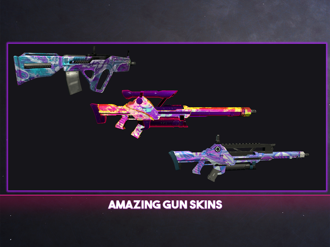 Fütüristik silah oyunumuz, büyüleyici bir cephanelik oluşturmak için tonlarca farklı uzay ve galaksi temalı desene sahiptir. En iyi yanı, bilim kurgu silah özelleştirmelerinizin her birini kaydedip daha sonra kullanabilmenizdir.