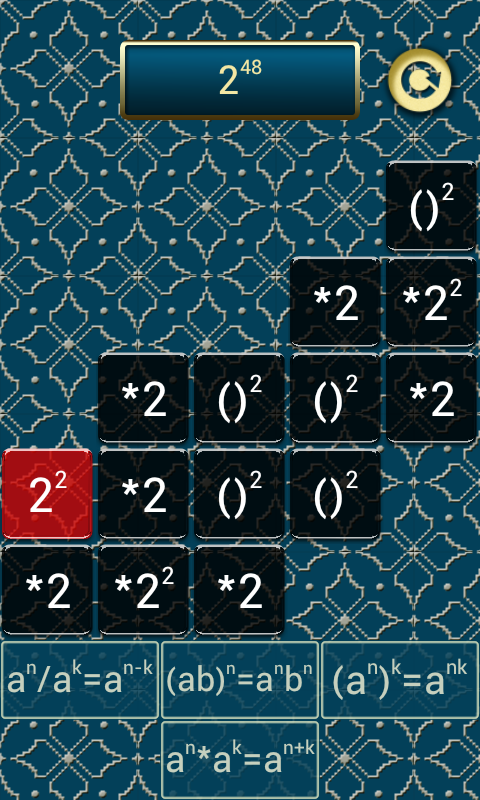 У верхній частині екрана (сине поле) знаходиться відповідь, яку необхідно отримати, щоб пройти рівень. Червоне поле – це начальне значення. Якщо червоне поле перетягнути на сусіднє чорне поле, то чорне поле стане червоним і значення червоного поле зміниться згідно формул у низу екрана.