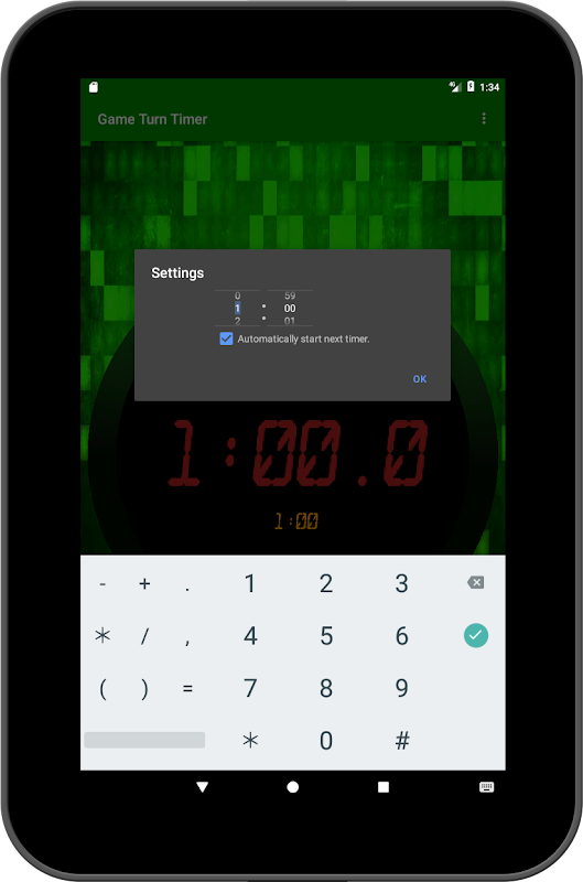 Bu sezgisel kronometre tahta oyunları oynarken zamanlama kurallarını uygulamak için kullanılabilir olduğunu.