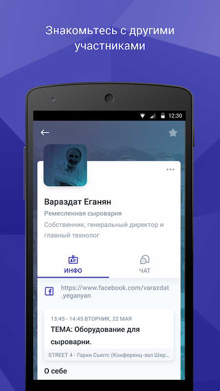 - составить собственную программу и получать оповещения о начале избранных докладов;