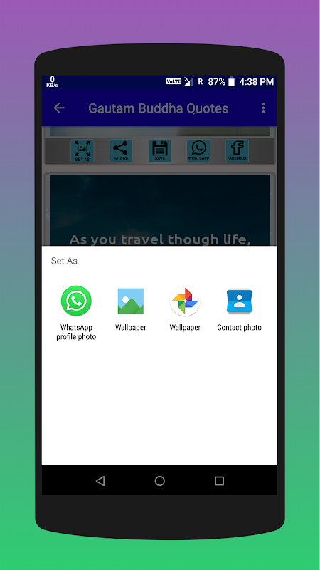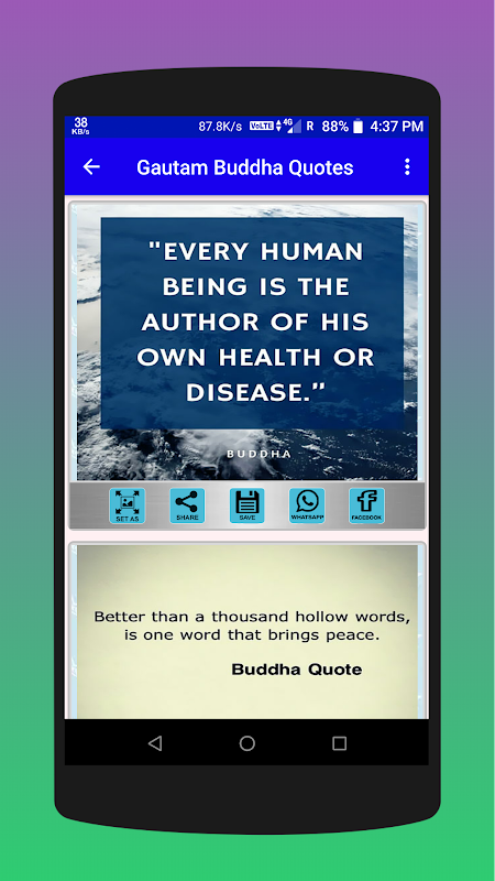 This is a amazing free android application of Lord Gautam Buddha Image Quotes with beautiful pictures.This app contains collection of Gautam Buddha quotes.