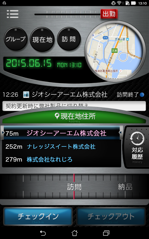 Harita geçmiş ziyaretlerinden ortak şirket yerle iş bağlantıları ve başarıları ile ilgili bulut bilgi depolamak için bir temel oluşturur. Bir satış elemanı olarak, tüm belgeleri taşımak gerekmez. Bunun yerine müşteri bilgileri ve satış faaliyetleri takip etmek için güvenilir bir bellek asistanı olarak smartphone güvenebilirsiniz.
