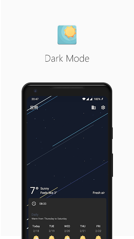 Geometri Hava Durumu size Güzel Materyal Tasarım Arayüzü, Global Hava Durumu Verileri, Otomatik Karanlık Mod, 15 Gün ve 24 Saat Genel bakış verisi, Güçlü Masaüstü Widget'ı, Hava Durumu Bildirimi ve Tahmini sağlayabilir.