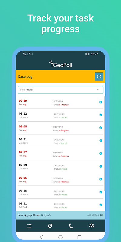 GeoPoll Görüşmeci Uygulaması, sayım görevlilerinin CATI (Bilgisayar Destekli Telefon Görüşmesi) ve yüz yüze/CAPI (Bilgisayar Destekli Kişisel Görüşme) anketleri yürütmesine yardımcı olmak için GeoPoll platformuyla birlikte çalışır.