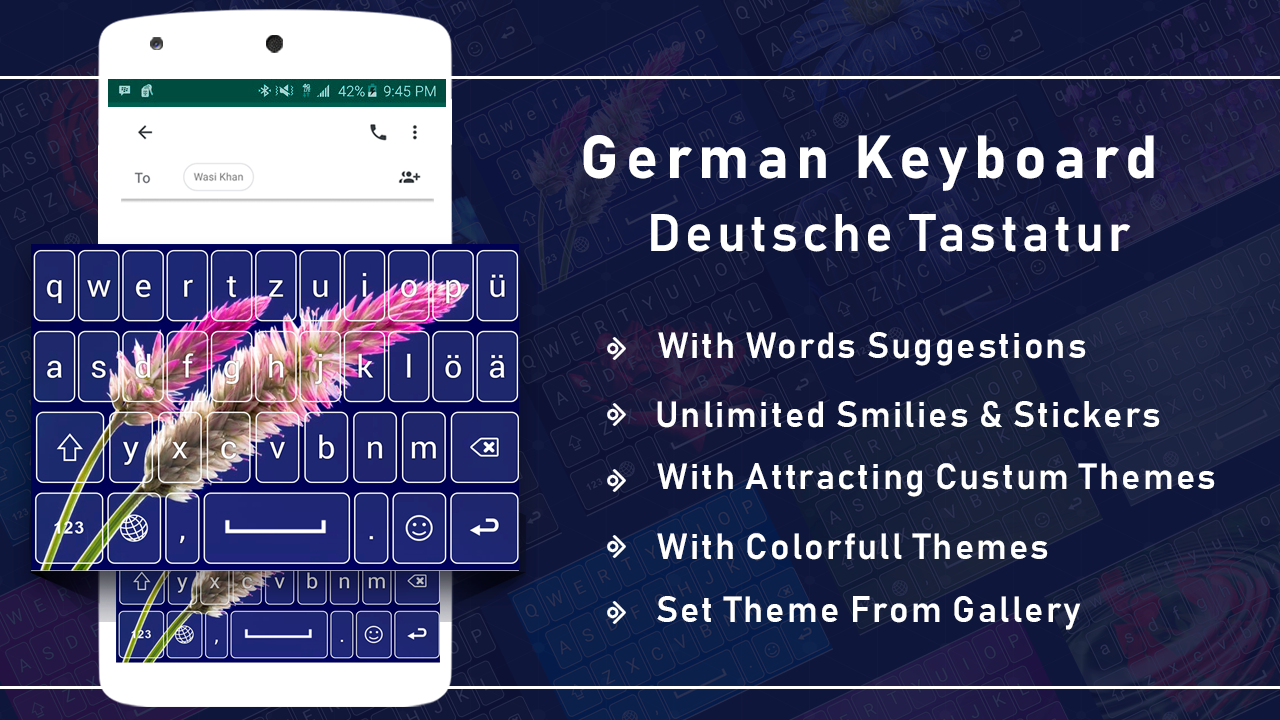 İngilizce Almanca Klavye, akıllı telefonlar için ikili bir klavye temasıdır. Bu, hızlı yazma klavyesine sahip çok dilli bir klavyedir.