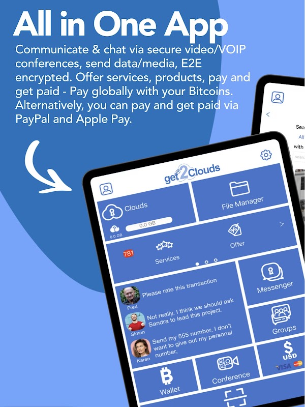 • get2Clouds Masaüstü: Ayrıca doğrudan bilgisayarınızdan transferler gönderip alabilir ve özel mesajlaşma programında sohbet edebilirsiniz.