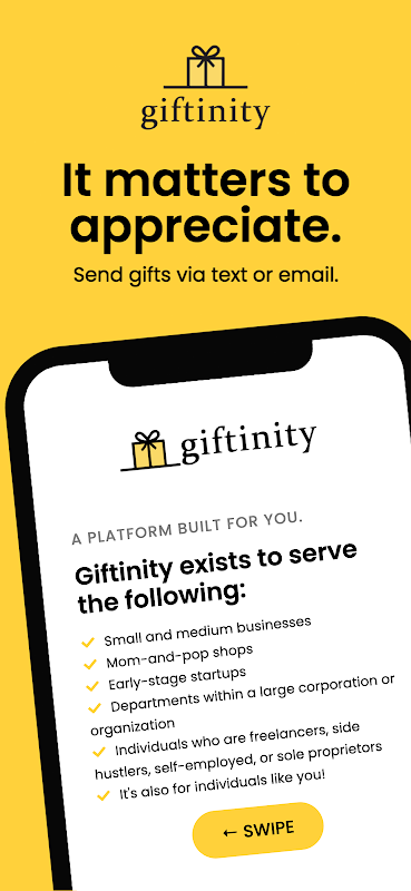 Bir hizmet olarak hediye aracı olan Giftinity, küçük ve orta ölçekli işletmelere, anne-baba dükkanlarına, başlangıç aşamasındaki girişimlere, büyük şirketler/kuruluşlardaki küçük departmanlara ve hatta serbest çalışanlar, yan dolandırıcılar olan kişilere yardımcı olmak için tasarlanmıştır. , serbest meslek sahipleri veya tek mal sahipleri, çalışanlarına ve meslektaşlarına, iş ortaklarına, satıcılara, müşterilere vb. anlamlı hediyeler göndermelerine izin vererek. Platformumuz, Salesforce, Hubspot, Zendesk, ADP gibi gelişmiş CRM ve HRM araçları gerektirmez. Okta, vb. Giftinity'nin kullanımı kolaydır, eğitim gerektirmez.