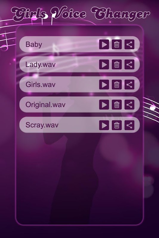 Girl Voice changer is a funny app to change your voice into different girl tone.