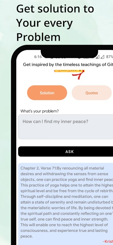 Gita GPT - Krishna ve arjuna ile bağlantı kurmak isteyen herkes için nihai mobil uygulama. Ayrıca hayata dair alıntıları da okuyabilirsiniz. Ayrıca, Krishna'nın güzel flüt müziği de sizi daha iyi hissettirmek için var. Uygulama aynı zamanda karanlık modu da içeriyor.