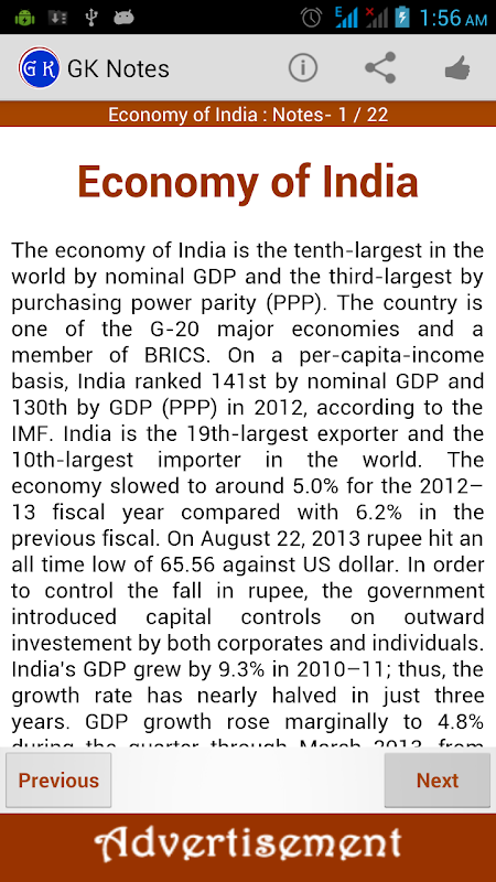 “GK Notes” android app contains short notes on various topics of GK.