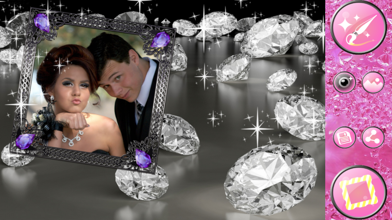 Kızlar için yaldız fotoğraf çerçeveleri ile süsleyin zaman fotoğraf elmas gibi parlak parlayacak. Parlayan sınırları ve şekilleri ile fotoğraflarınızı aydınlatın. Bu ♢ Lüks Taşlı Çerçeve ♢ daha Fotoğraflarınız için daha iyi bir şey yok. Hatıralarınızı Işık ve sadece renkli pırıltılar, altın ve gümüş gerçek sihir yapmak ve fotoğraf sanatı fotoğraflarınızı dönüştürmek için unutulmaktan onları kurtarmak. Fotoğraf manipülasyon keyfini ve eğlenin!