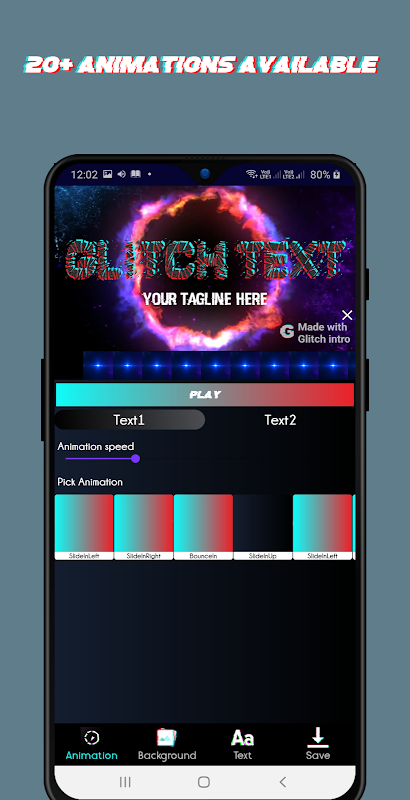 Glitch intro, 50'den fazla Önceden tanımlanmış harika metin animasyonları sunar. Bu tüm animasyonların kullanımı tamamen ücretsizdir. Her iki metne de animasyon uygulayabilirsiniz.