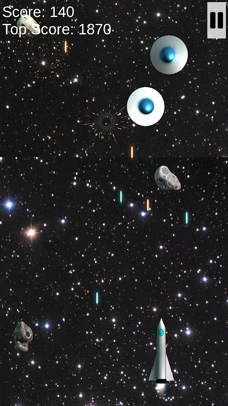 - Düşman uzay gemilerini vurun ve asteroitleri patlatın