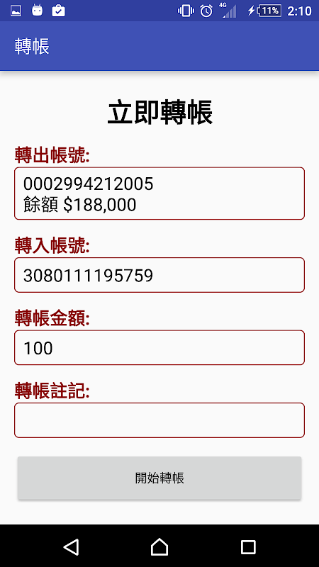 1. Mobil banka hesabı giriş, transfer (hesap, şifre modu)