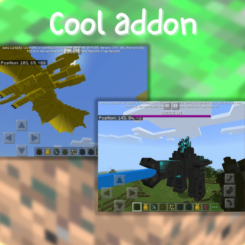 Minecraft PE uygulaması için Godzilla Mod'un özellikleri: