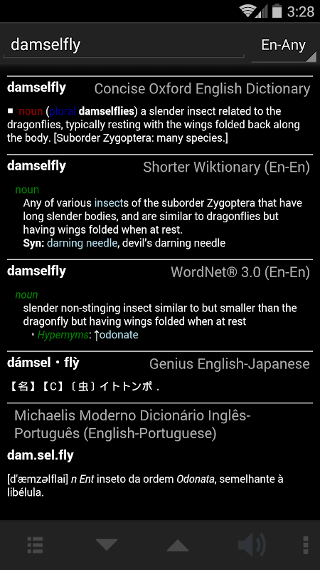 Piyasadaki en hızlı ve en çok formatlı sözlük uygulaması. Lingvo, Babylon, StarDict, Lingoes ve Dictd sözlük dosyalarını tam olarak destekler. Tam biçimlendirme, renkler, görüntüler ve sesler ile gösterilen makaleler. Aramalar hızlı parlıyor. Artık istediğiniz tüm sözlükleri yanınızda Android cihazınızda taşıyabilirsiniz!