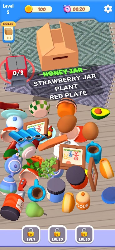1. Oyunu kazanmak için kutudaki listelenen şeyleri seçip bırakın.