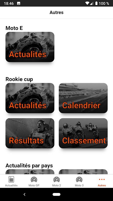 Moto GP, Moto 2, Moto 3, Moto E, Roockie Kupası: Haberler, sıralamalar, sonuçları, programları, sürücüleri, takımlar, devre farklı kategorilerde.