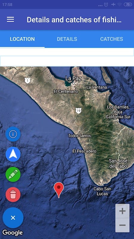 6. Balık tutma konumunuzu kaydedebilir ve yönetebilirsiniz (GPS sağlayıcısını kullanarak veya koordinatları kullanarak veya haritaya tıklayarak gerçek zamanlı olarak). Ayrıca belirli bir balık avlama yerine gidebilirsiniz.