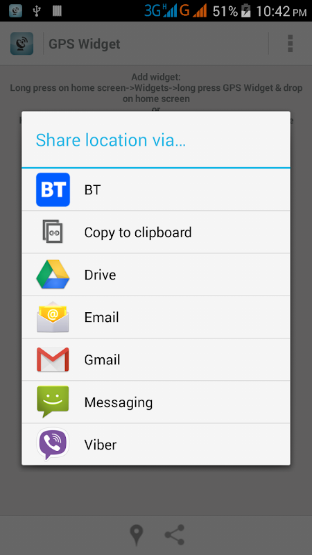 Konum verilerinizi E-posta, SMS vb. yoluyla arkadaşlarınızla paylaşabilirsiniz. Bu widget aynı zamanda mevcut konumunuzu Google Haritalar'da görüntüleme olanağı da sağlar.