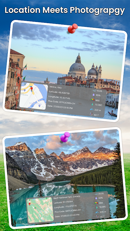 GPS harita zaman damgası uygulamamızla konum ve resim dünyasını birbirine bağlayın. Anları ve mekanı konum damgasıyla yakalayın. Bu uygulama gezginler, açık hava tutkunları veya anıları saklayanlar için idealdir. Anılarınızın oluştuğu harita görünümü ile mutlu ve maceralı anlarınızı paylaşın. Burada snap'iniz enlem ve boylam, tarih, saat, adres, nem, rüzgar hızı ve basınç bilgilerini içerecektir.