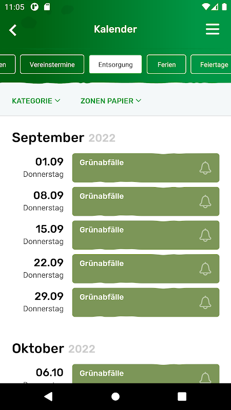 • Çöp takvimi: Çöpleri mevcut imha takvimi ile birlikte toplama tarihleriyle birlikte atın.