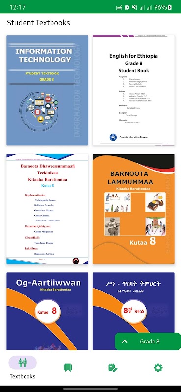 Tüm ders kitaplarınızı parmaklarınızın ucuna getiren kapsamlı mobil uygulama Etiyopya Oromia Bölgesi Kitapları ile 1., 2., 3., 4., 5., 6., 7. ve 8. sınıflarda başarıya hazırlanın. Özelliklerle dolu platformumuzla dijital öğrenmenin rahatlığını ve esnekliğini yaşayın.