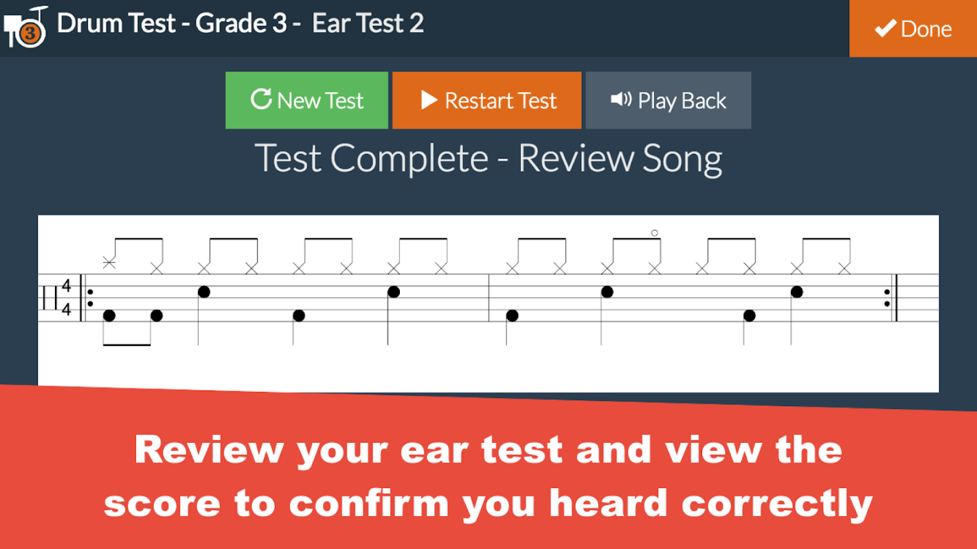 senin RSL (Rockschool) Grade 3 drum kit sınav için uygulayın. Eğer, dinleme, okuma ve sınav için hazırlık ile birlikte oynamak için bu yararlı uygulama kulak ve deşifre testleri üretecektir.