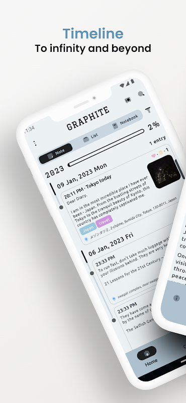 Graphite, yerel bir ilk günlük günlük, günlük, not defteri ve yapılacaklar listesi hepsi bir arada. Günlük düşüncelerini ve deneyimlerini takip etmek isteyen herkes için mükemmel bir araç. Kullanımı kolay arayüzümüz, notları, fikirleri ve anıları hızlı ve kolay bir şekilde not almanıza olanak tanır.