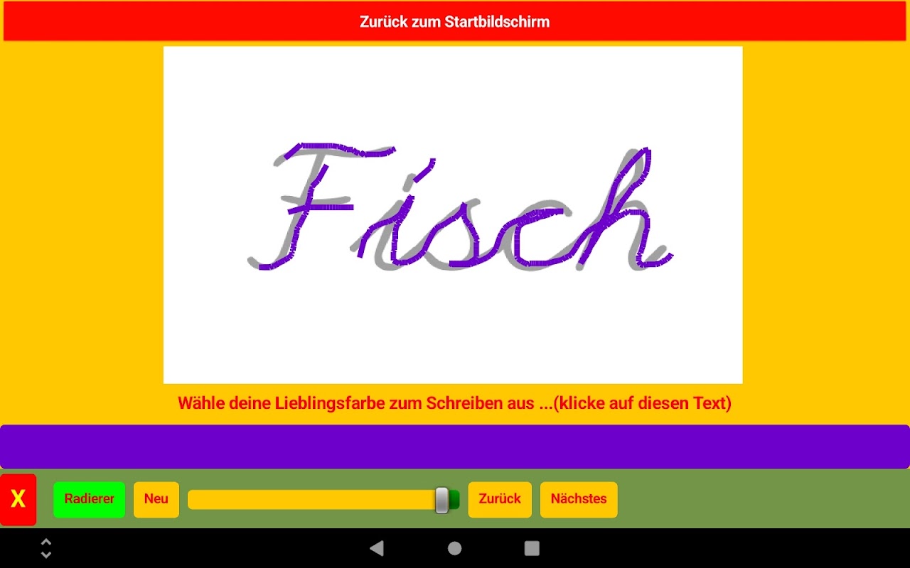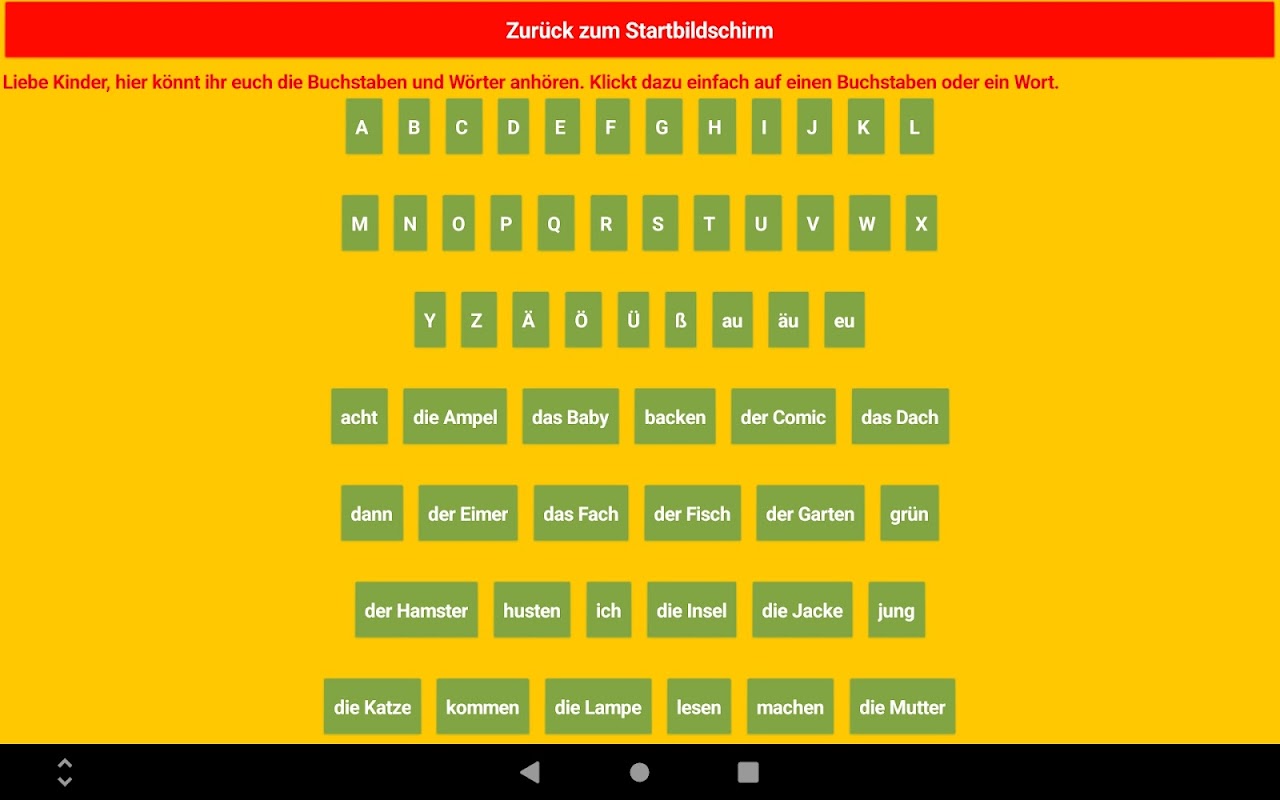 Bu uygulama Almanca okuma ve yazma pratiği yapmak isteyen çocuklar için uygundur. Okul öncesi çocuklar ve 8 yaşına kadar okul çocukları için uygundur. Bu yazma eğitimi uygulaması çocuk dostu terimler içeriyor. Tasarım çocuklara da uyarlandı. Uygulamanın kullanımı sezgisel olarak kolaydır.