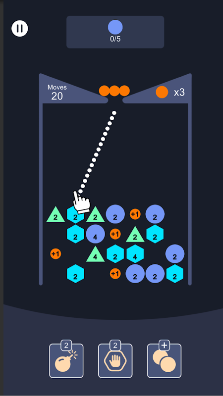 Aim at blowing all blocks with one shot. Tap with one finger and throw balls. Make them bounce among colorful shapes.