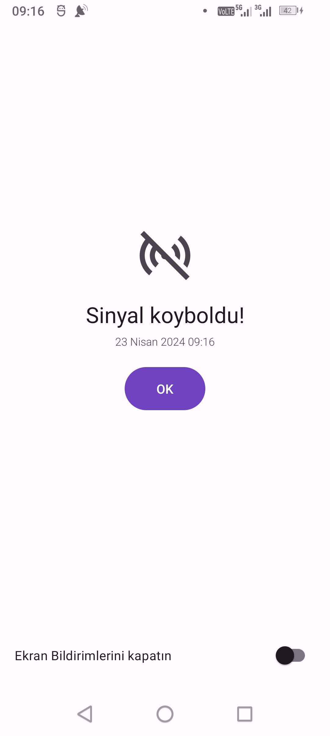 GSM Sinyal Monitörü, sinyal veya mobil veriniz olmadığında sizi bilgilendirir.