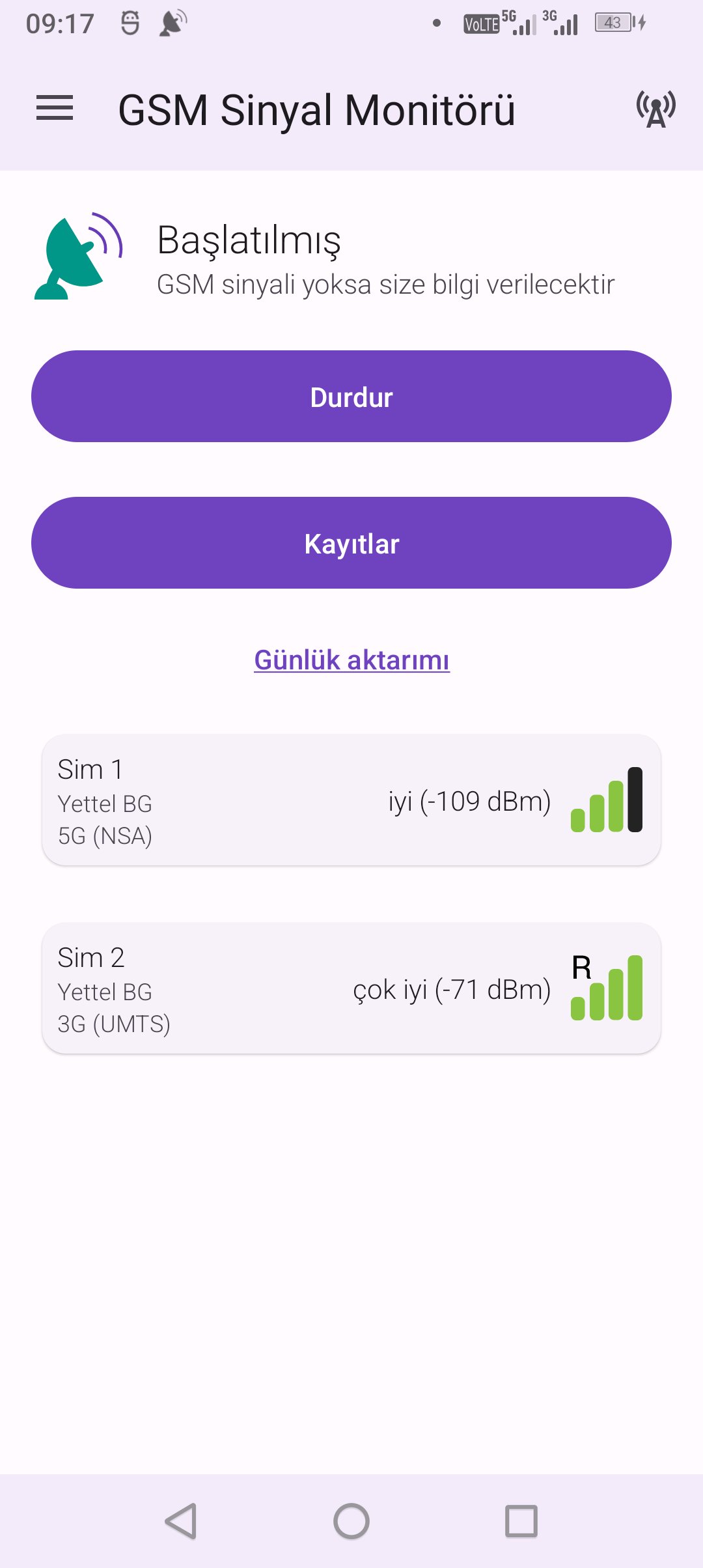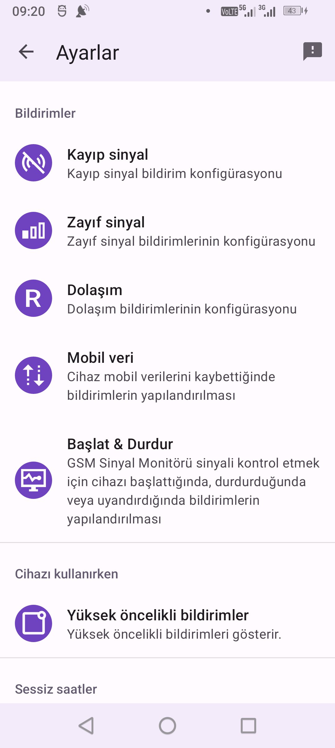 GSM Sinyal Monitörü ayrıca sinyal geri geldiğinde, mobil verileriniz kaybolduğunda ve dolaşım alanında olduğunuzda sizi bilgilendirebilir.