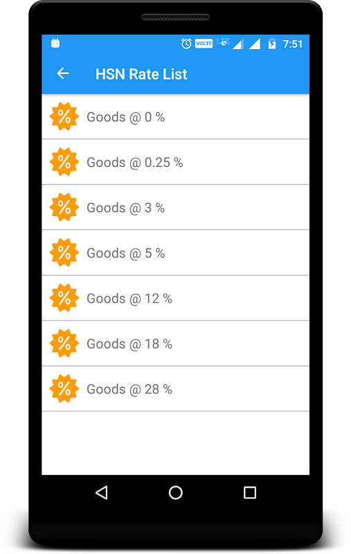 This App provide you Correct HSN codes and Rates of Product given by Government.