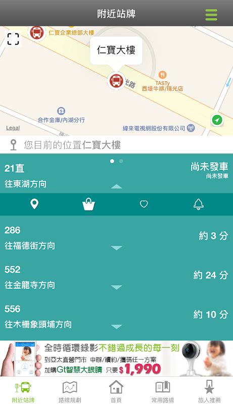 ◆GPS定位查詢附近公車、站牌、Ubike、捷運站和停車場服務資訊